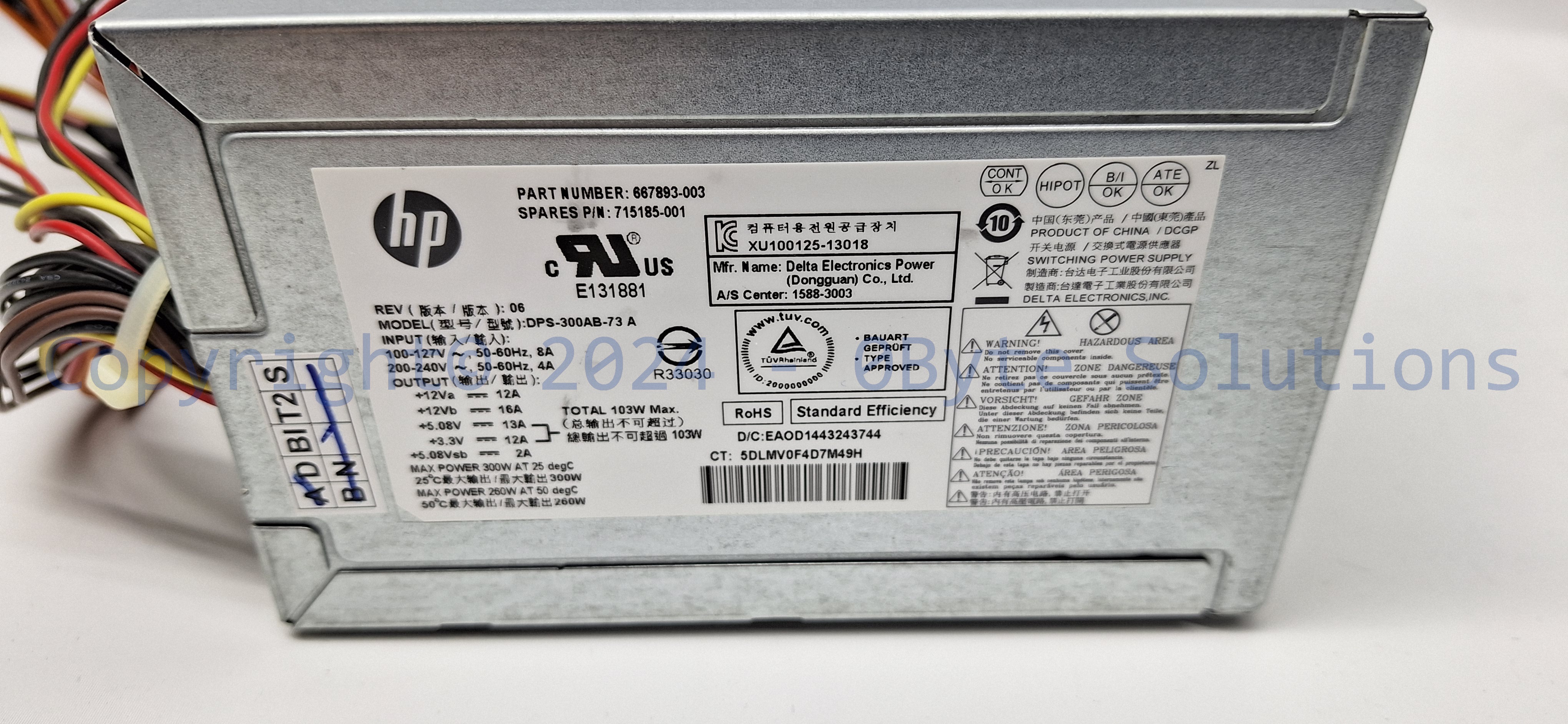 Tested/***WORKING*** HP 667893-003 300W ATX Power Supply Unit from a HP ENVY Desktop - 700-527c