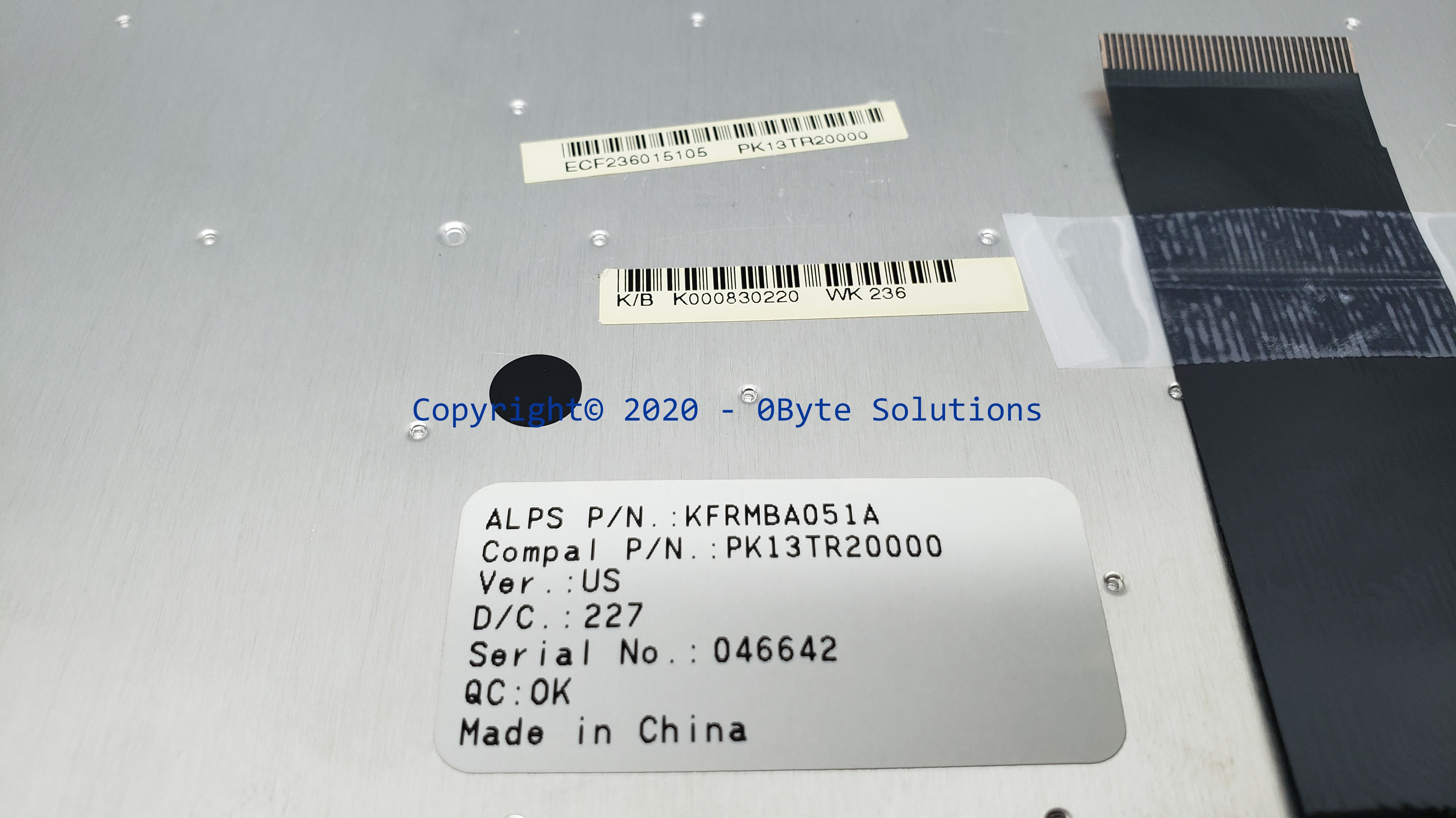Toshiba/Alps K000830220/KFRMBA051A/PK13TR2000 Notebook Keyboard