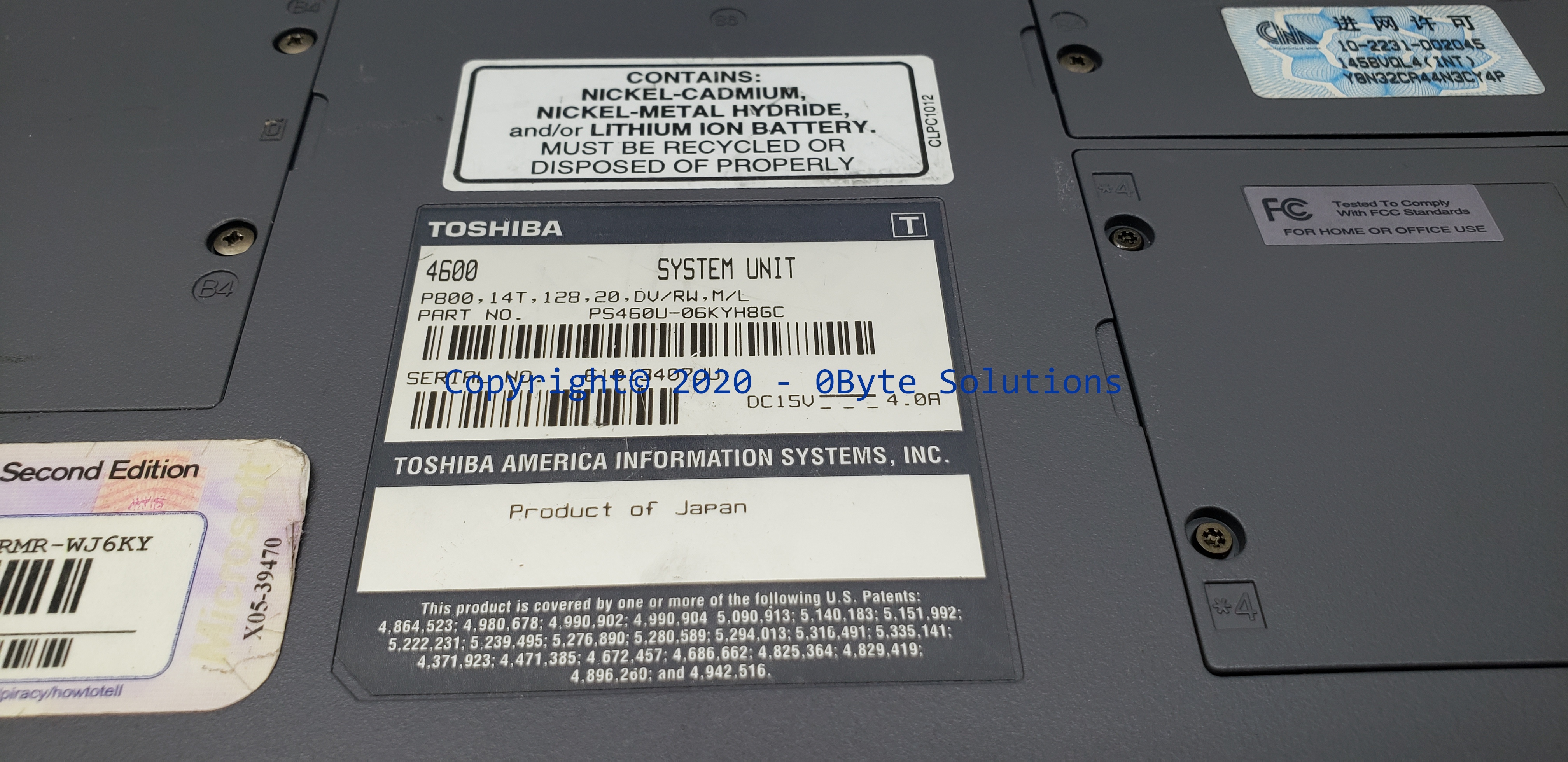***TESTED***/Working Toshiba Satellite Pro 4600 Notebook/Laptop with uPGA2/BGA2 Intel Mobile Pentium III-800 SL548 CPU, 512 MBytes 133.3 MHz (PC133) SDRAM RAM & 20GB IBM-DJSA-220 E-IDE (ATA-5) HDD with Windows XP (NOTE: DOES NOT INCLUDE battery & cover or power cord, ONLY AS SHOWN IN PHOTOS.)
