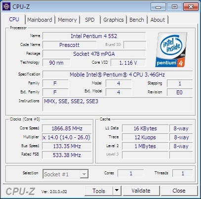 ***TESTED***/Working with Socket PPGA478 Intel® SL7NC Mobile Pentium® 4 Processor 552 3.46GHz, 1MCache, 533MHz FSB CPU