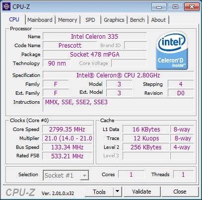 ***TESTED***/Working with Socket PPGA478 Intel® SL7DM Celeron® D Processor 335 2.80 GHz, 256K Cache, 533 MHz FSB CPU