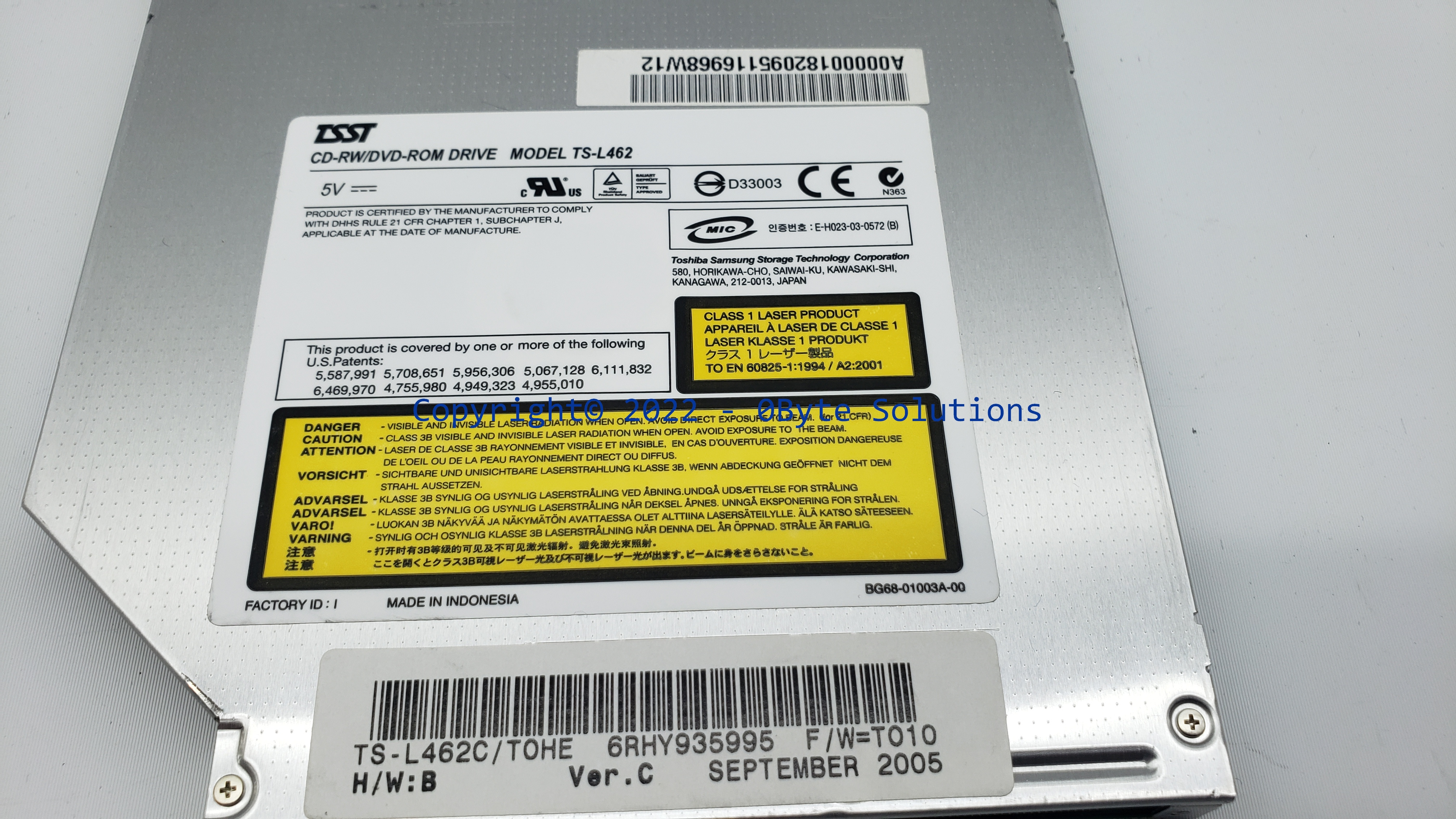 Tested/***WORKING*** Toshiba Samsung Storage Technology TS-L462 CD-RW/DVD Drive from a Toshiba Satellite L25 Series with Including Faceplate for Toshiba Satellite L25 Series (NOTE: DOES NOT INCLUDE MOUNTING BRACKET)
